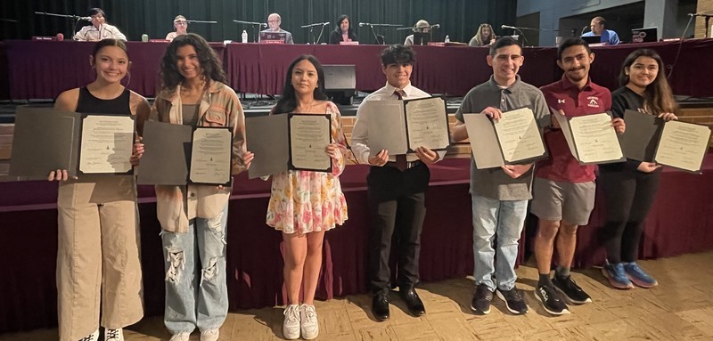 On September 18, 2023, the Lockport Township High School District 205 Board of Education recognized senior students, Aidan Preciado, Ayden Mercado, Federico Lagunas, Katelyn Munis, Liliana Furmanek, Samuel Alvarado, Sofia Reyes, and Valerie Martinez for achieving the National Hispanic Recognition Award from the College Board as a result of their grade point average of 3.5 or higher and outstanding performance on the PSAT/NMSQT, PSAT 10, and/or AP Exams.